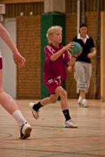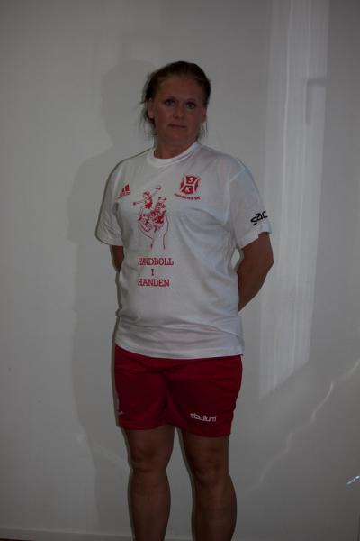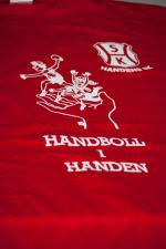 Röd tröja "Handboll i Handen", vita byxor. HSK-logo på båda.