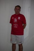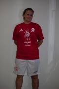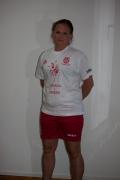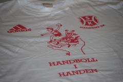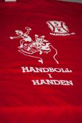 Röd tröja "Handboll i Handen", vita byxor. HSK-logo på båda.