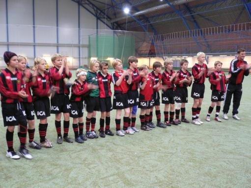 ...gratuleras av pojkarna för segern.