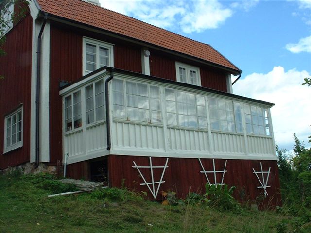 Verandanymalad.jpgGlasverandan som förkortar vintern och förlänger sommaren med månader! Här har man ätit och druckit, sjungit och skrålat, spelat kort och filosoferat i ljusa sommarnätter och tagit en tupplur efter en god middag. Senast var det Bola och Shu som målade ytterväggarna, södersolen bränner snabbt bort färgen Glasverandan |