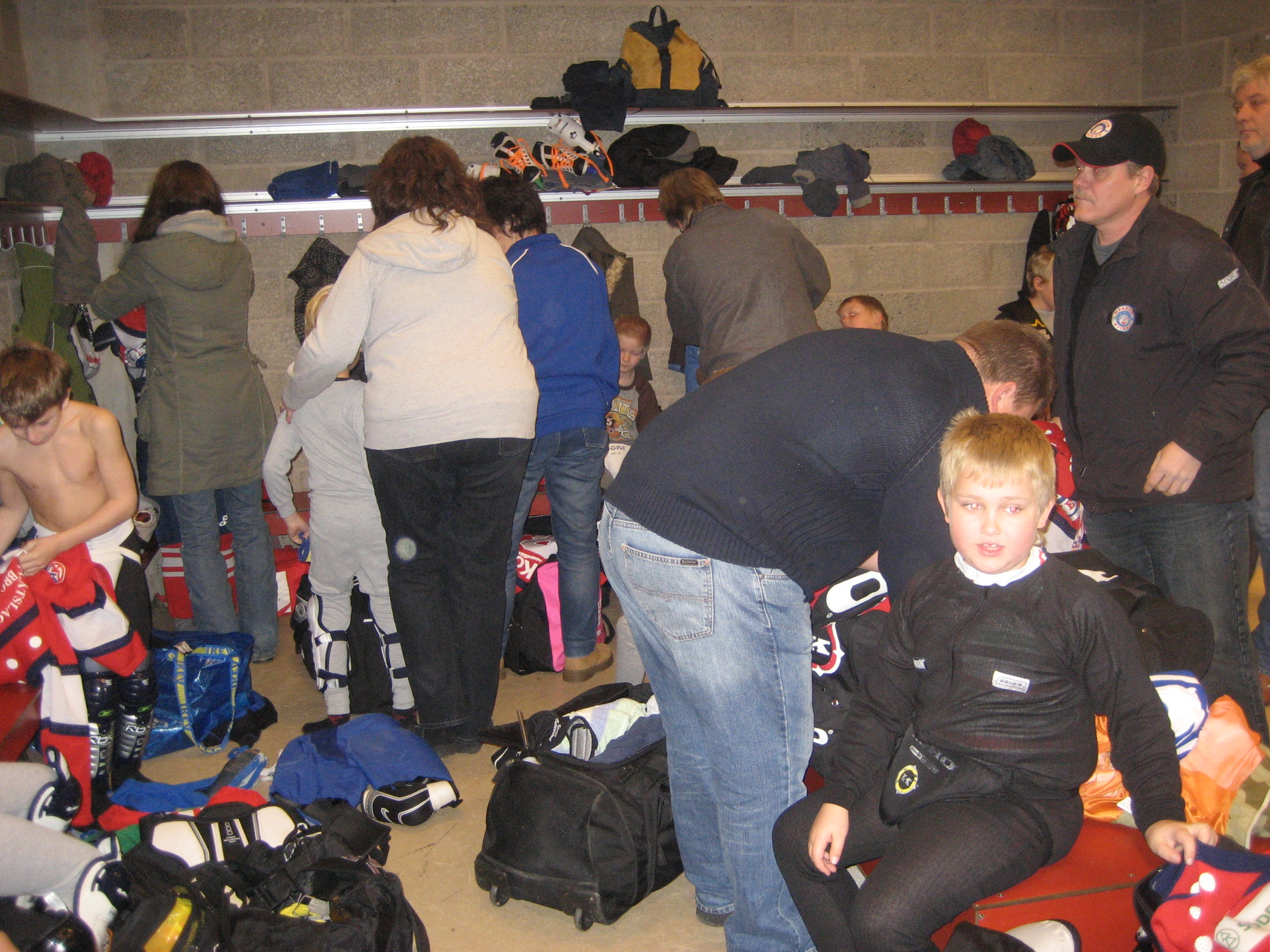 Massor av föräldrar i omklädningsrummet...