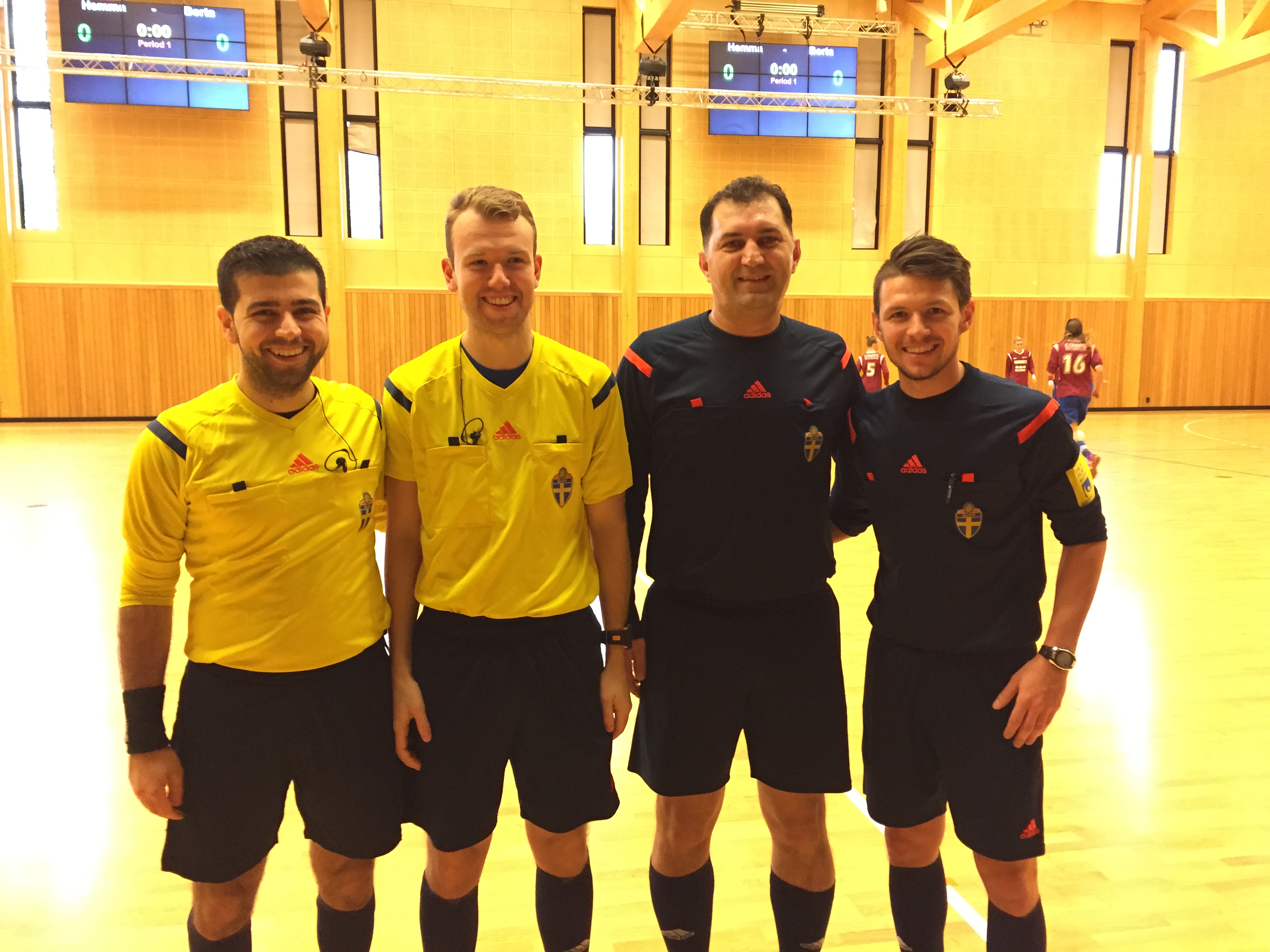 Hana Mohammad Salah, Ajdin Mlivic, Elvir Turcinovic och Elis Kvrgic genomförde idag sina första matcher som distriktsdomare i Futsal. Matcherna spelades på Olsbergs Arena i Eksjö och deltagande lag var If Eksjö, Stensjöns IF, Höreda GOIF, IF Hebe, AFC och Högsby IK.