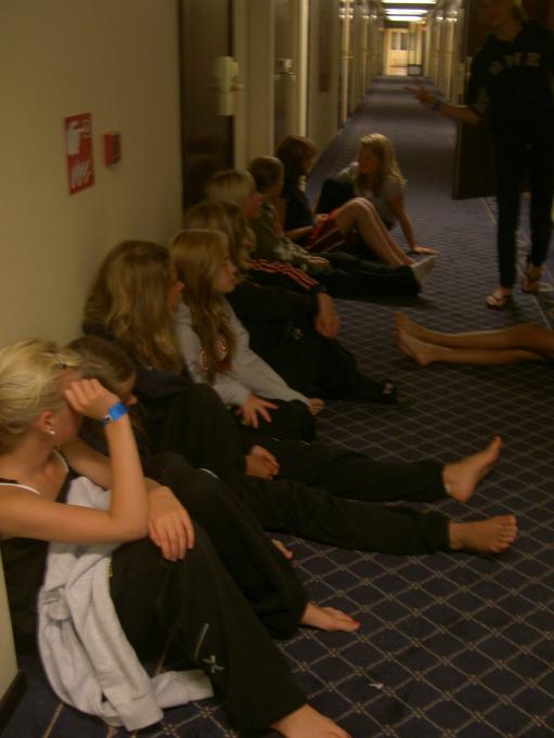 Sen samling i hallen uppe i vår korridor. Tjejerna är nog lite trötta...