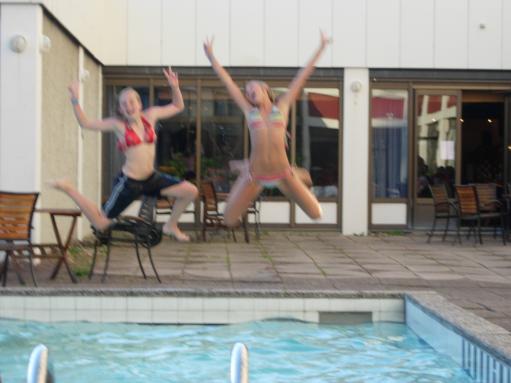 Mickis och Sara i hoppar tagen.