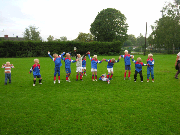 ... är killarna så glada så de gör både kullerbyttor och vågen på en gång.