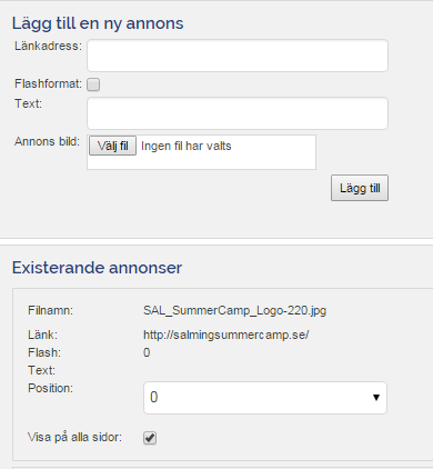 - Klicka på Inställningar & Administration / Sponsorer / Egna annonser
